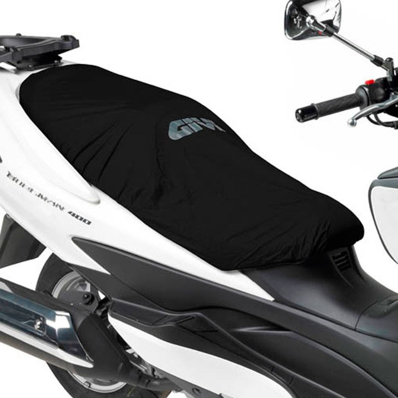 - Funda en teixit impermeable de color negre per protegir el selló del scooter de la pluja i de la pols.