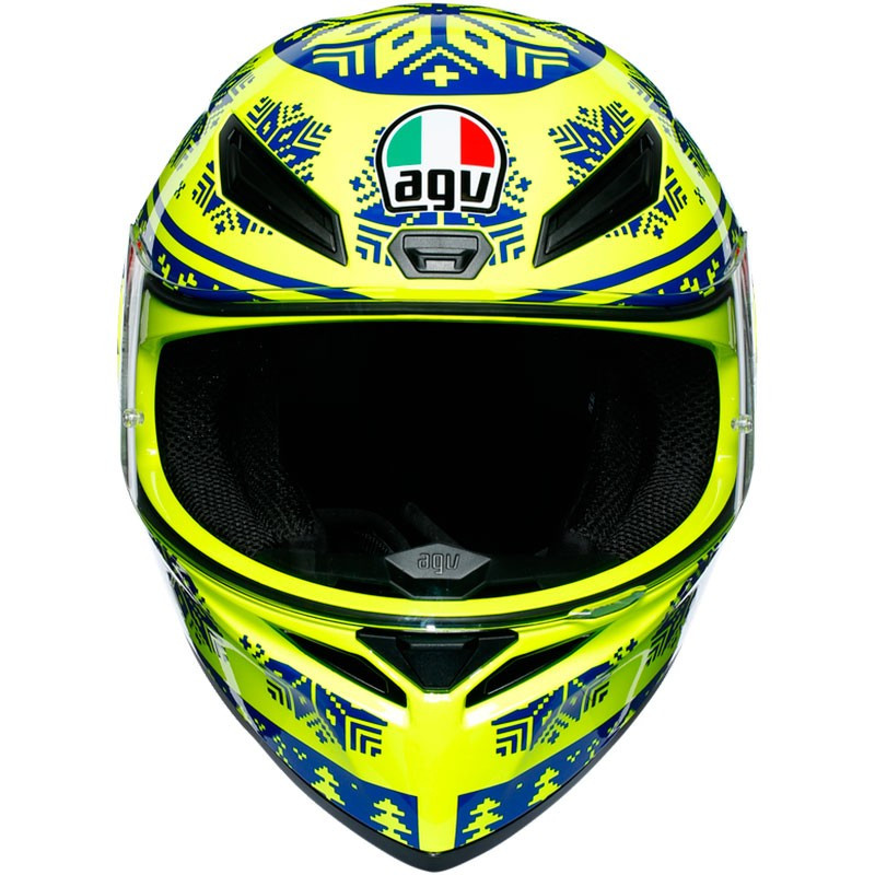 AGV trenca els codis amb el casc de moto AGV K-1 Rossi Winter Test 2015 , amb la seva forma aerodinàmica i l'aleró del darrere com en el seu model de gamma alta, el Pista GP R.