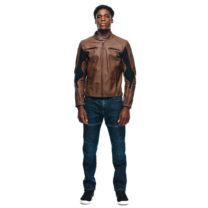 La jaqueta està equipada amb discrets i còmodes protectors als colzes i les espatlles i està fabricada amb cuir prémium, posant de manifest la qualitat i l'estil Dainese.