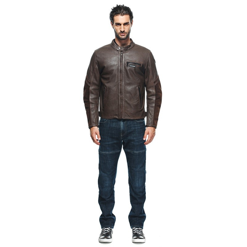El fabricant italià de roba de moto Dainese , presenta la seva jaqueta de moto de cuir amb folre càlid, la Merak Leather Jacket , una jaqueta d'estil vintage per a home.