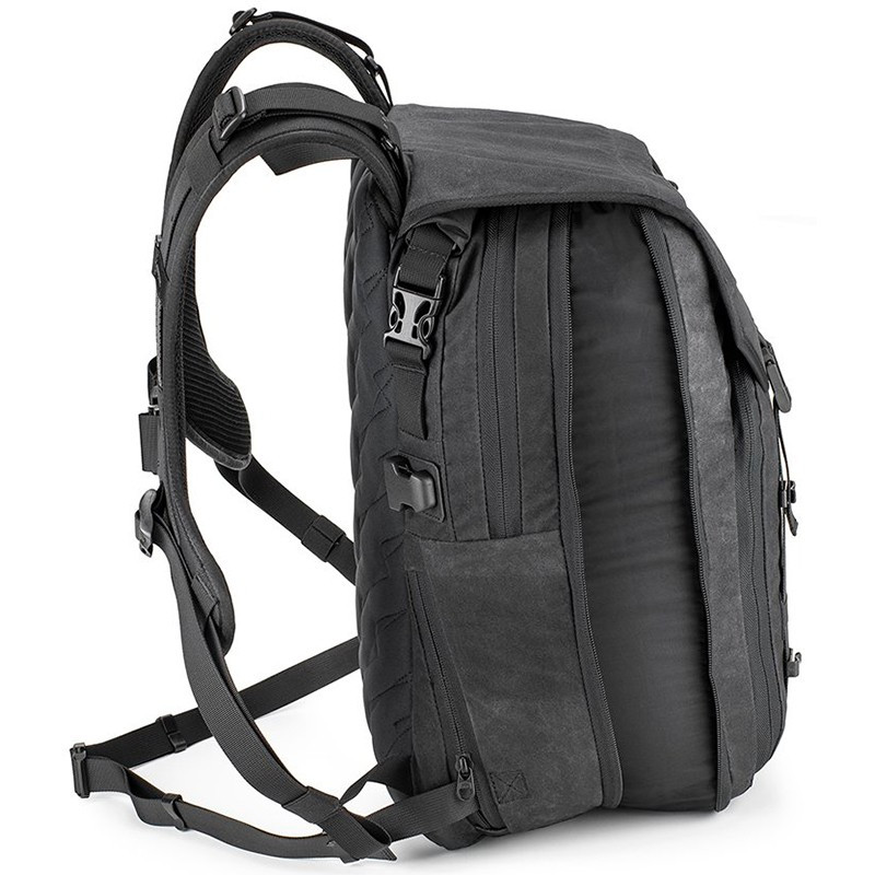 Consta de 3 seccions: una butxaca impermeable enrotllable per a portàtil de 15", un compartiment abatible amb cremallera de 4 litres ple de butxaques organitzadores i un espaiós compartiment principal amb accés mitjançant cremallera YKK® d'alta resistència, ampliable de 22 a 30 litres quan sigui necessari.