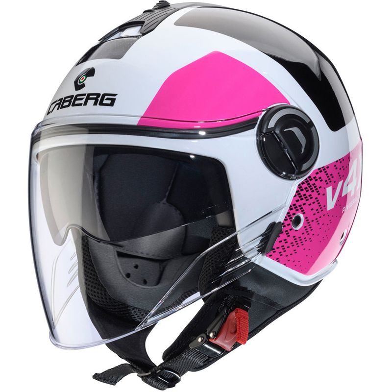 Especialment dissenyat per al seu ús a la ciutat a bord d'un scooter, el nou casc Caberg Riviera V4 X Alpha està disponible en molts colors i, gràcies al disseny compacte i al baix preu, farà les delícies dels habitants de la ciutat que desitgin un casc elegant i compacte amb dues viseres més llargues que la versió anterior per a una millor visibilitat i protecció contra el sol i el vent.