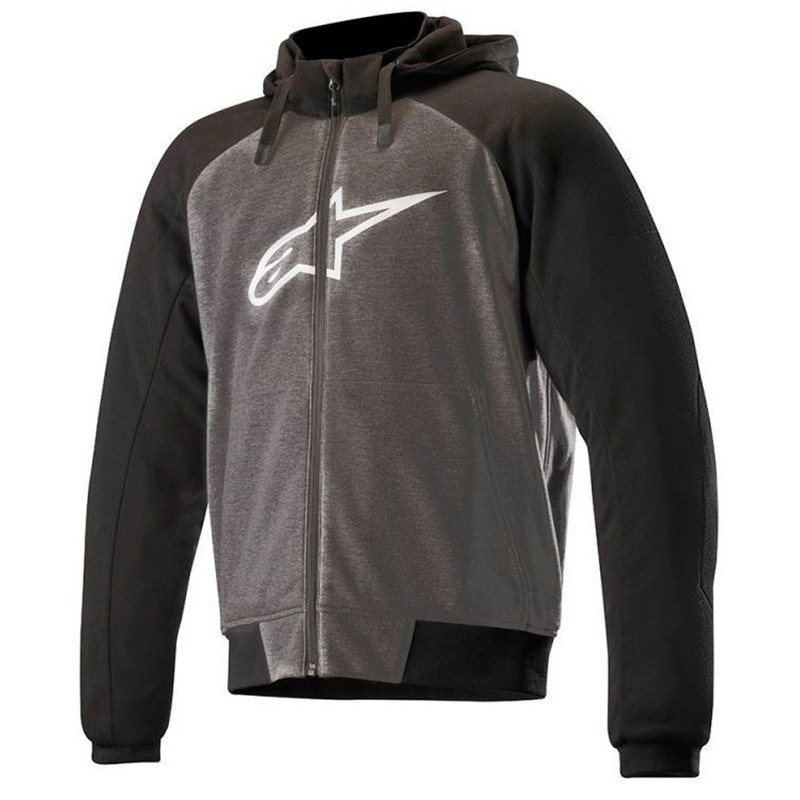 Alpinestars bietet Ihnen die Chrome Sport an, die einer klassischen Kapuzenjacke ähnelt, jedoch mit zugelassenen Protektoren und Kevlar-Verstärkungen an Ellbogen, Schultern und Rücken ausgestattet ist, um optimalen Schutz zu gewährleisten.