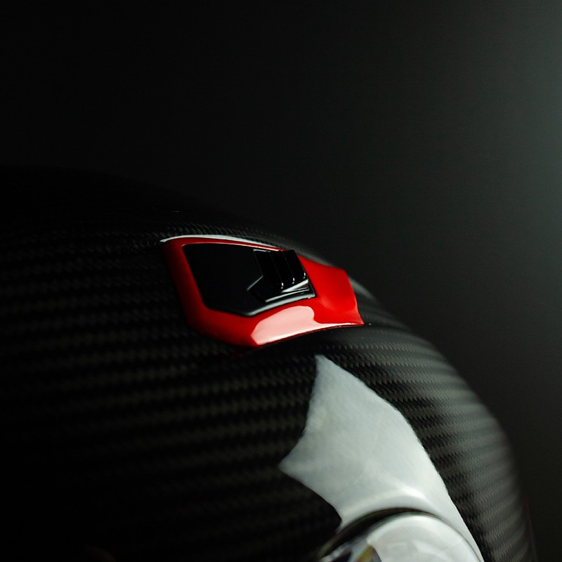 - Außenschale aus 100% Carbon für optimale Sicherheit und reduziertes Gewicht, erhältlich in 3 Schalengrößen, um das Volumen des Helms je nach Größe zu begrenzen.