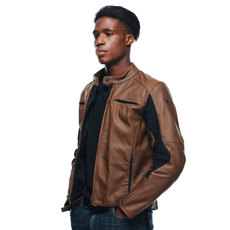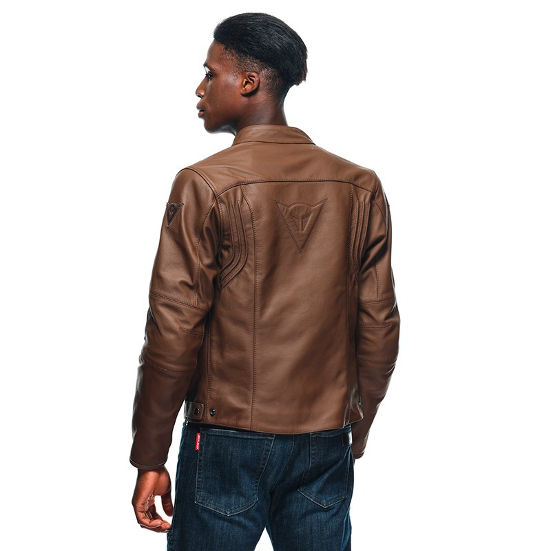 Die Jacke ist mit diskreten und bequemen Protektoren an Ellbogen und Schultern ausgestattet und besteht aus hochwertigem Leder, was die Qualität und den Stil von Dainese unterstreicht.