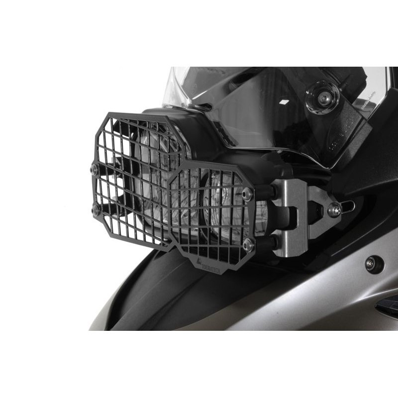 Touratech-Scheinwerferschutzvorrichtungen werden aus hochwertigem Edelstahl lasergeschnitten und anschließend schwarz pulverbeschichtet, um ein langlebiges, gut aussehendes Finish zu erzielen.
