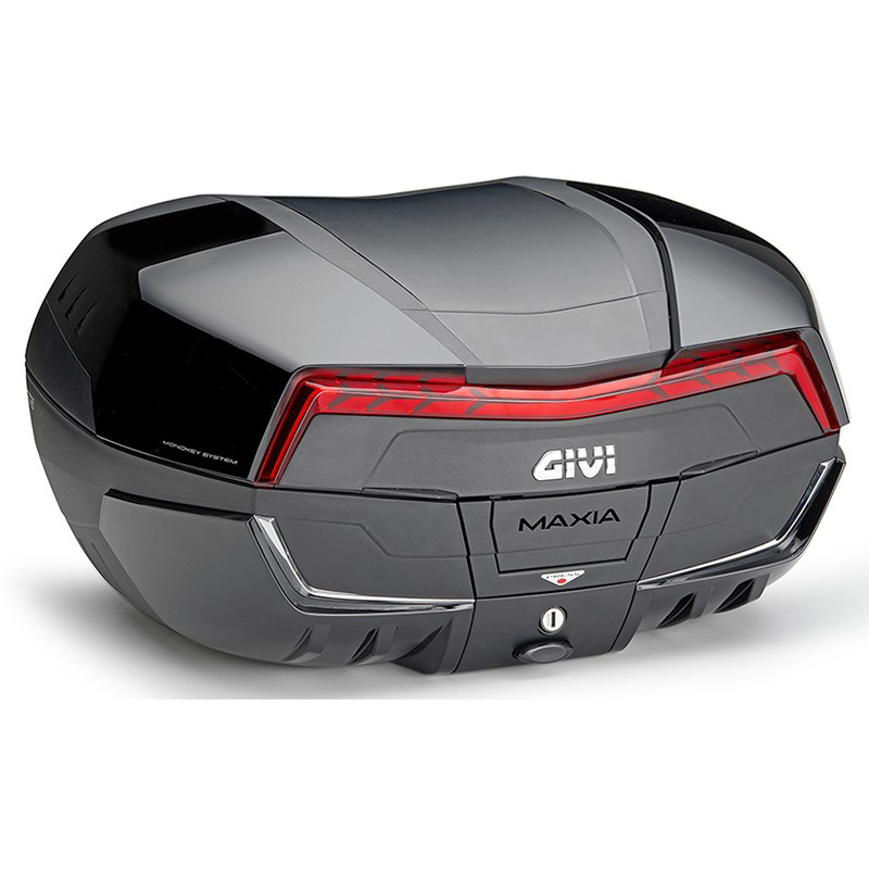 Maxia 5 ist die fünfte Serie des 58 L MONOKEY®-Koffers mit einem erneuerten, vom Motorsport abgeleiteten Design. Die V58NT-Version verfügt über 4 aluminiumfarben lackierte Abdeckungen und einen transparenten Reflektor, der über die gesamte Vorderseite der Abdeckung verläuft und mit einem Fotoätzteil auf der Abdeckung und zwei Chromleisten auf der Vorderseite der Unterseite verziert ist. Eine elegante Kombination, die dem Motorrad Persönlichkeit verleiht.