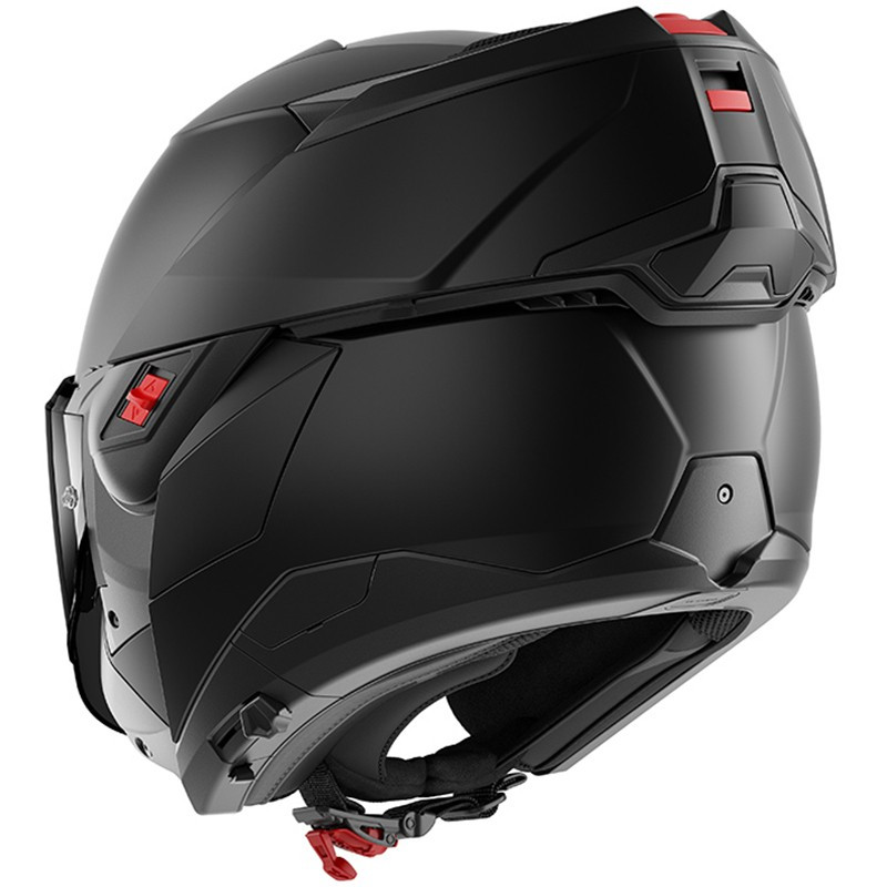 - Öffnungssystem an der Vorderseite des Kinnschutzes mit 2-stelliger Entriegelungstaste für 100% sicheren Verschluss.