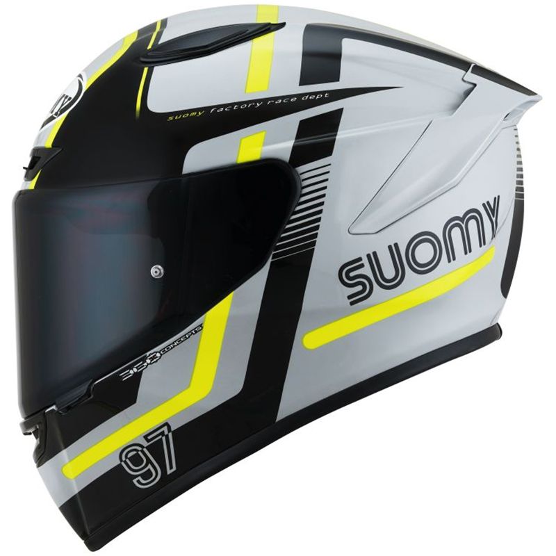 Der Suomy Track-1 Ninety Seven-Helm repräsentiert die neueste Generation von Integralhelmen aus Tri-Composite-Fasern (Carbon, Aramid, Glas) der Marke Suomy .