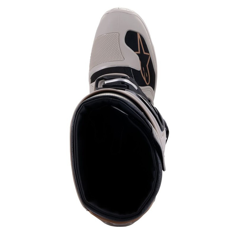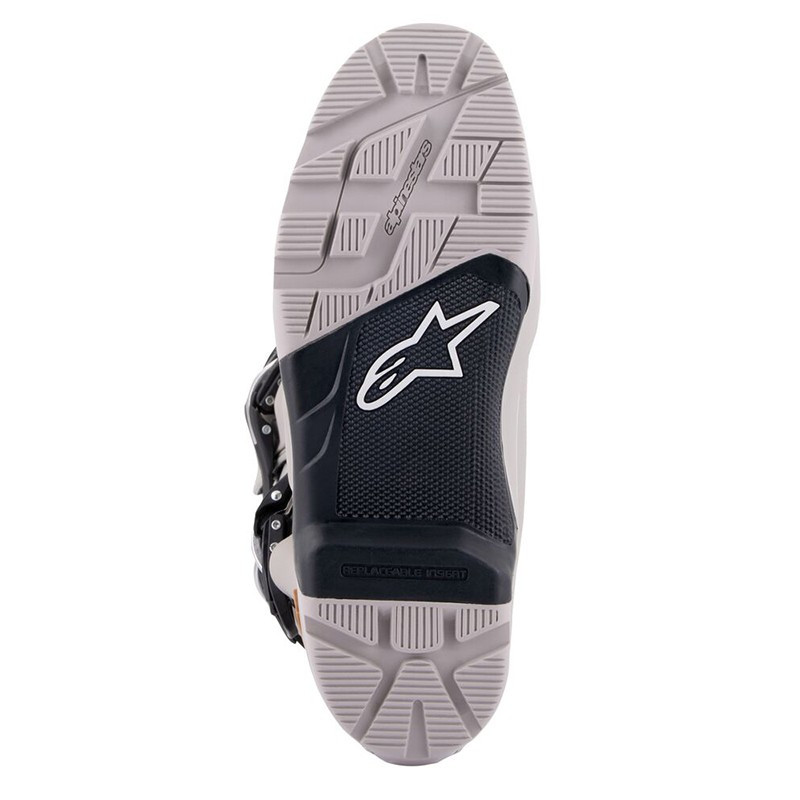 Contoured calf protector plate is injected with high modulus polymer for impact resistance and incorporates Alpinestars’ developed blade flex system for greater precision control and movement, added protection for heel and Achilles tendon and helps prevent hyperflexion.