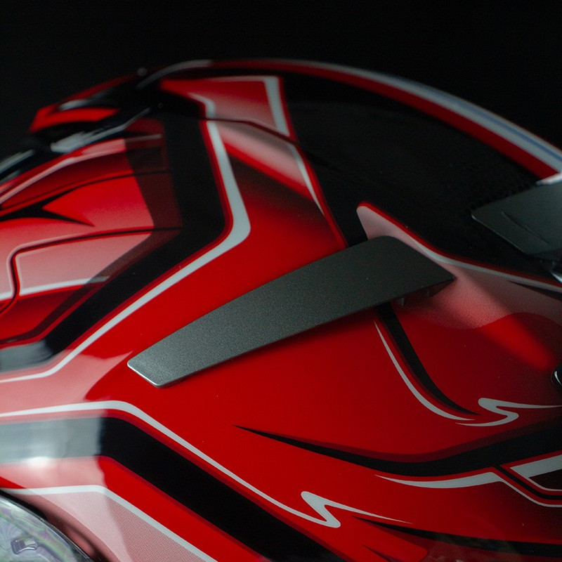 - Highly specialized aerodynamic system for high-speed riding. Developed and tested in the SHOEI wind-tunnel, it reduces drag and lift of the helmet. This decreases the stress that the neck of the rider must overcome. Lift is reduced by 3% and drag by 10% compared the the X-Spirit II.