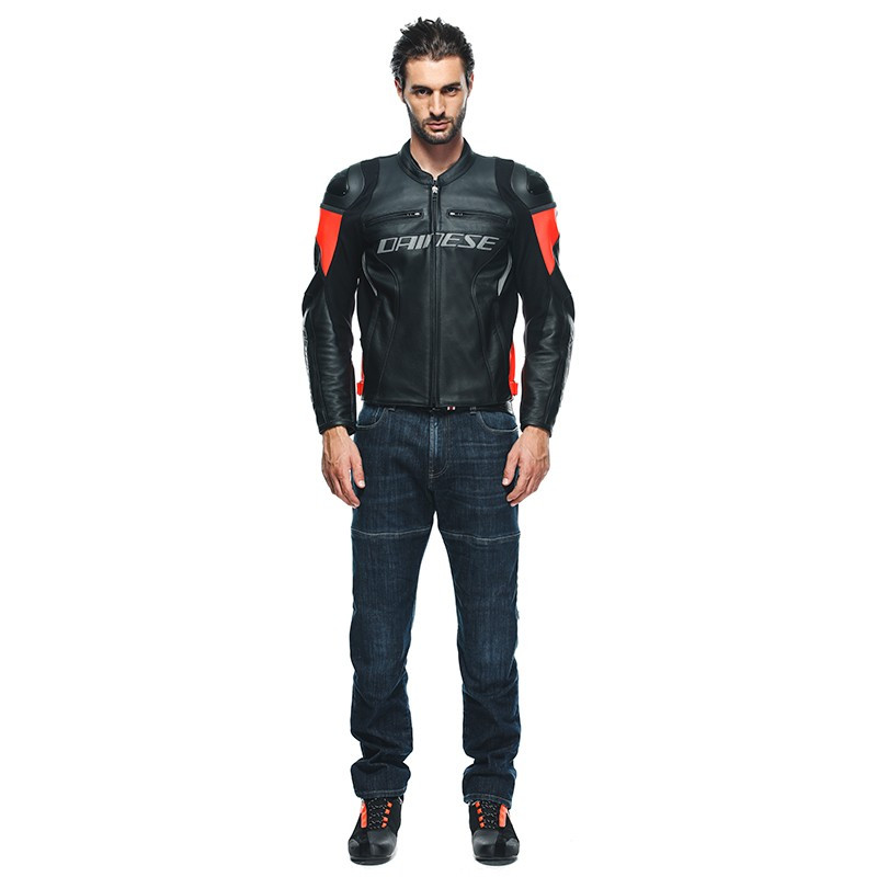 The Italian motorcycle clothes manufacturer Dainese presents you his new leather moto jacket for man, the Racing 4 Leather Jacket.
