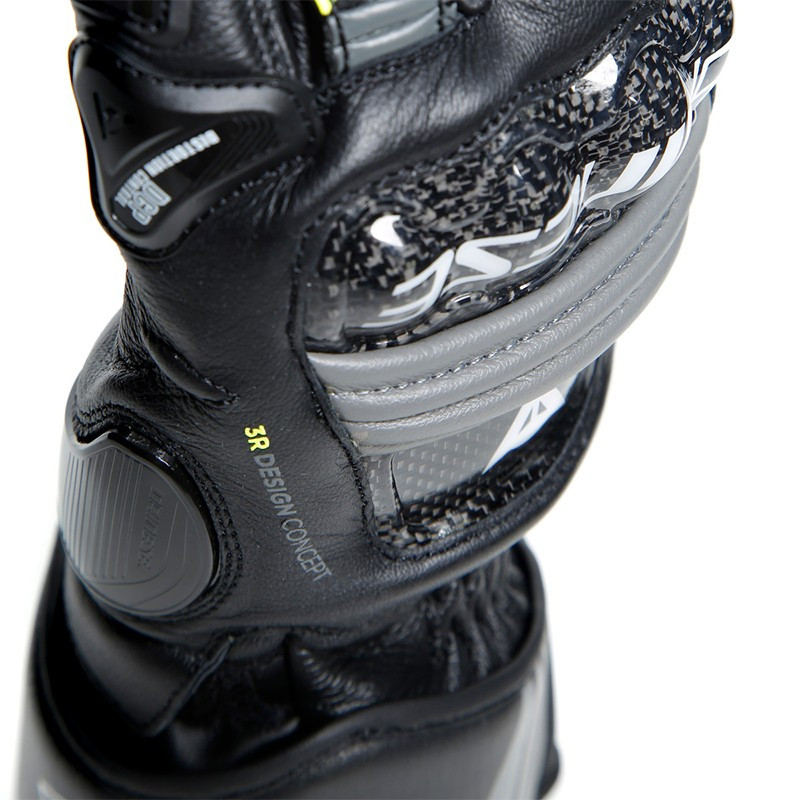 - The metacarpals as well as the top of the hand are equipped with a double articulated carbon reinforcement for optimal protection without neglecting freedom of movement.