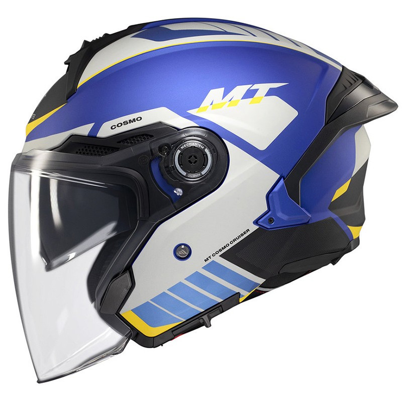 The Spanish brand MT Helmets offers you its open face motorbike polycabonate CE 22.06 approved helmet with internal sun visor, the Cosmo SV Cruiser.