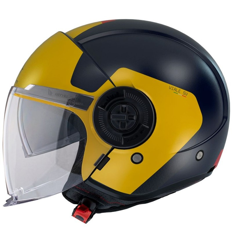 The Spanish brand MT Helmets offers you its open face motorbike polycabonate CE 22.06 approved helmet with internal sun visor, the Viale SV S Beta.