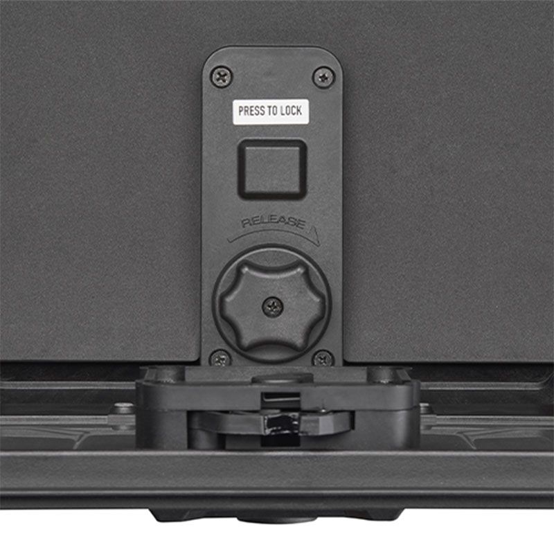 This system makes it safer to remove the top case, as it can only be unhooked when it is open.