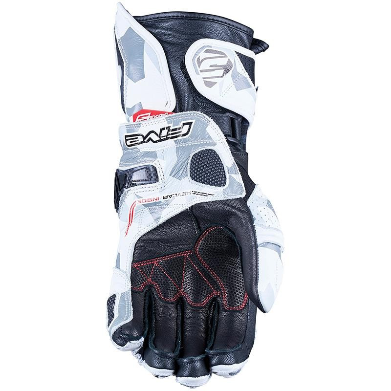 El especialista en guantes de moto Five se enorgullece de ofrecerle su modelo de circuito / deporte, el RFX1 Replica, con su construcción exterior hecha de piel de vaca de plena flor en la parte superior de la mano por su alta resistencia a la abrasión y la palma de la mano hecha de piel de cabra para una flexibilidad excepcional.