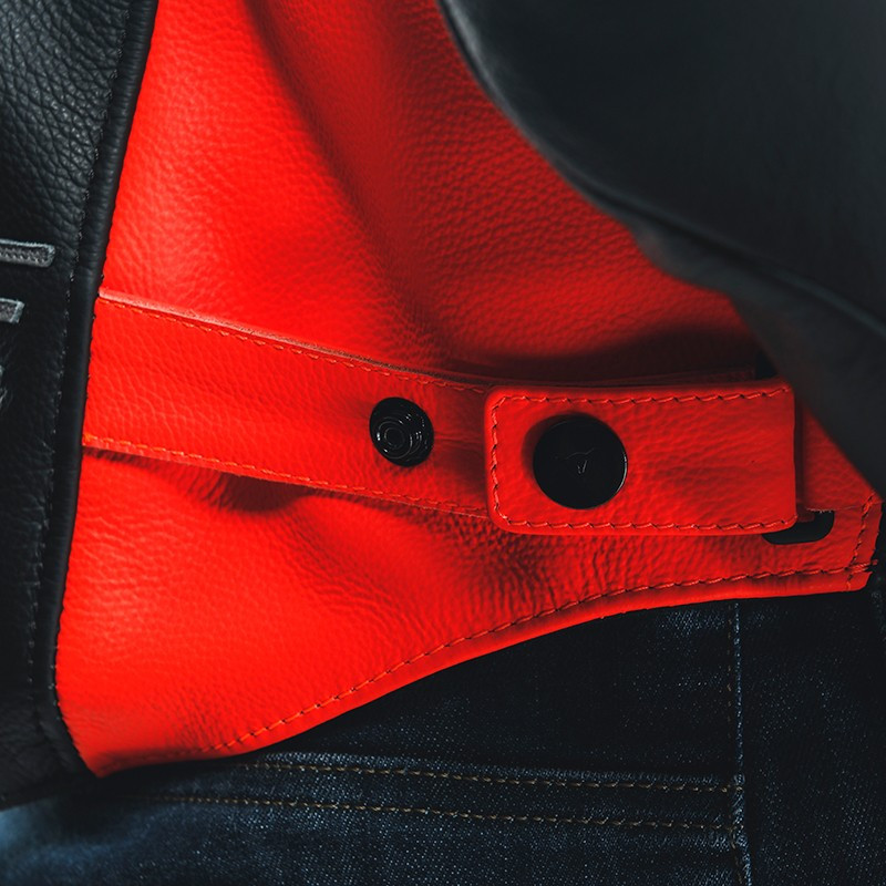 • Construcción principal en piel de vaca Tutu, que Dainese incorpora por su gran flexibilidad y sobre todo, por su alto nivel de resistencia a la abrasión y al desgarro en caso de caída.