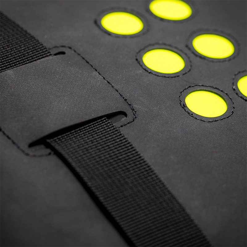 El cierre enrollable 100% impermeable (forro blanco extraíble) garantiza que el contenido de la bolsa, permanezca protegido de los elementos.