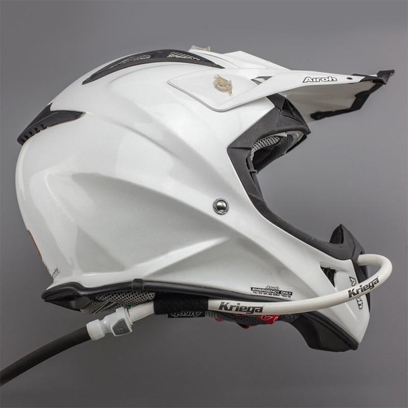 Este kit coloca la válvula flexible del tubo de hidratación, permanentemente cerca de la boca del motociclista, lo que permite una hidratación rápida y segura en modo manos libres.