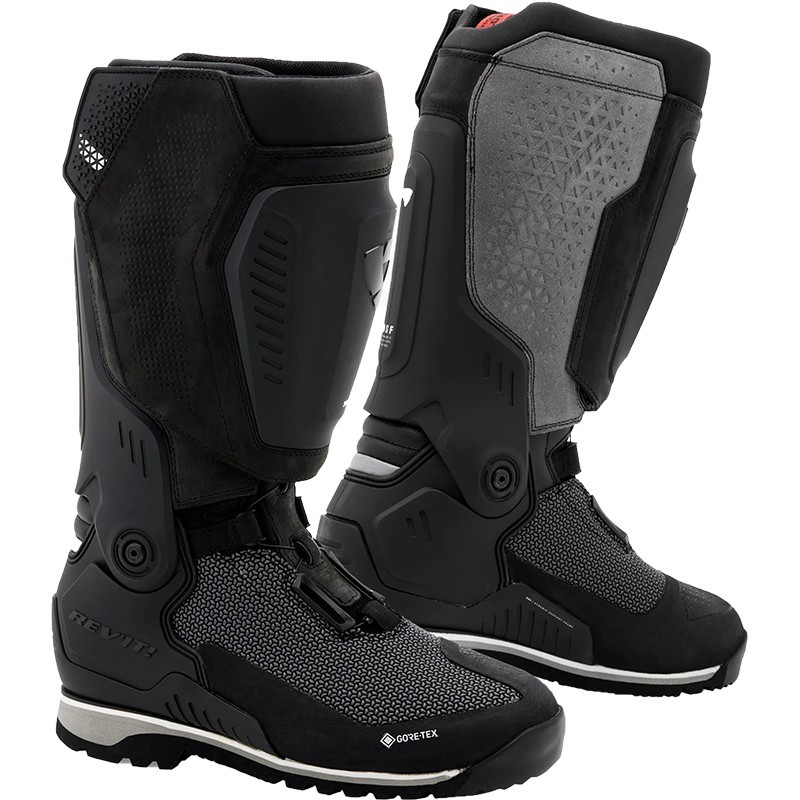 Una verdadera mezcla entre una bota de carretera y una bota de motocross y diseñadas para los motoristas que utilizan motos trail/adventure, las botas Rev'it Expedition Gore-Tex, serán perfectas para utilizarlas durante el invierno y la temporada media y te protegerán eficazmente de la lluvia con su membrana Gore-Tex de nueva generación.