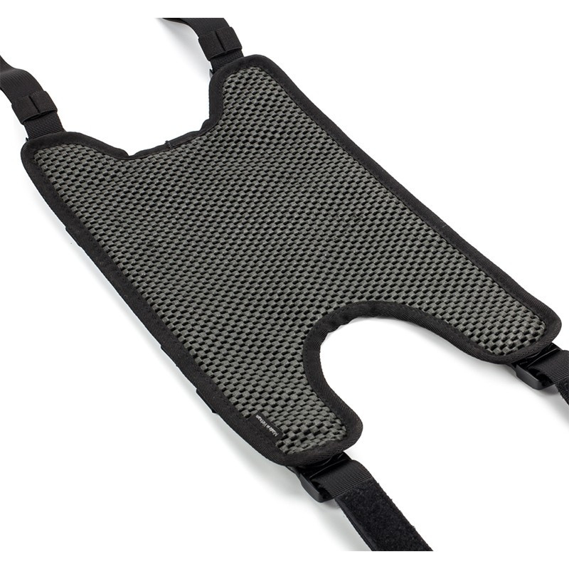 - El tejido base resistente a los arañazos mantiene la mochila firmemente en su posición y las hebillas de liberación rápida facilitan el acceso al depósito de combustible.