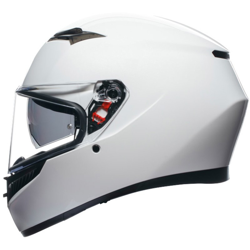 El nuevo casco AGV K3 Mono Seta Blanco es una evolución del AGV K-3 SV. Tiene una nueva forma que se ha desarrollado para garantizar un peso dinámico a 130 km/h, para aliviar la tensión del cuello y limitar la resistencia al viento. Tiene un nuevo interior de alta gama, una pantalla solar que se puede manipular fácilmente con una palanca en la parte inferior izquierda del casco y, sobre todo, tiene la nueva norma CE 22. 06 que, gracias al protocolo de diseño Extreme Safety de AGV, supera incluso la norma 22.06 para ofrecerle una protección óptima.