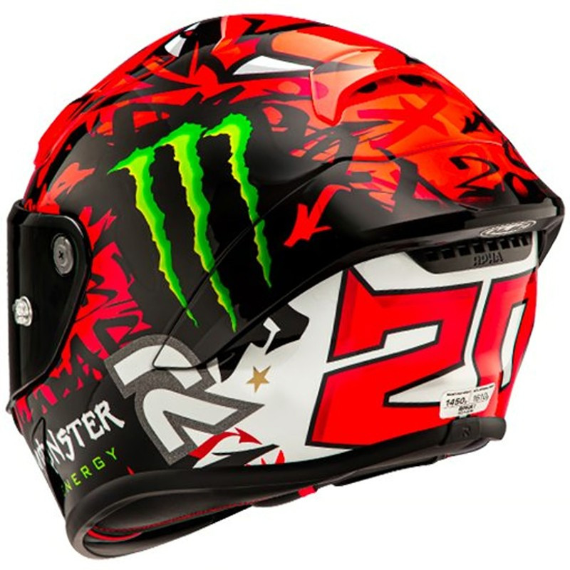 Para garantizar una protección óptima, el casco está construido con una mezcla de fibra de vidrio y fibra de carbono, y cuenta con la nueva norma ECE 22.06, así como con la norma FIM, que es obligatoria para utilizar el casco en competición.