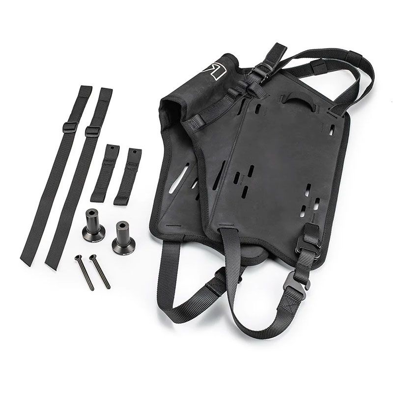 El OS-BASE es un «arnés sobre el asiento» para montar las mochilas OS-6, OS-12 u OS-18 ADVENTURE PACKS como alforjas blandas, sin necesidad de estructuras metálicas.