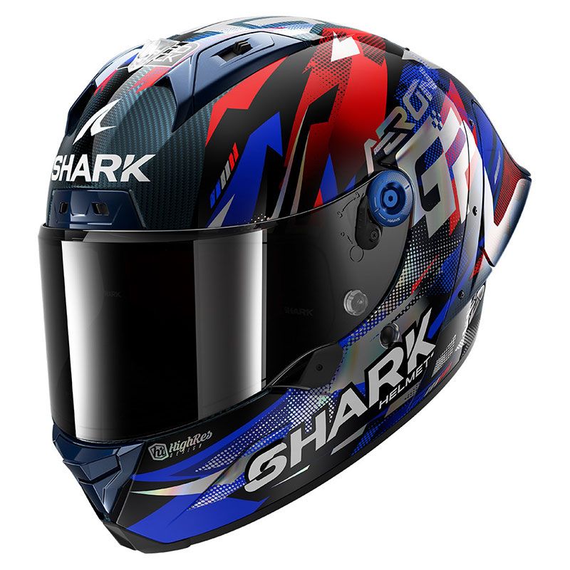 El fabricante francés de cascos de moto Shark, te propone su casco de moto integral deportivo de fibra y carbono homologado CE 22.06, el Aeron GP Replica Zarco GP de France.