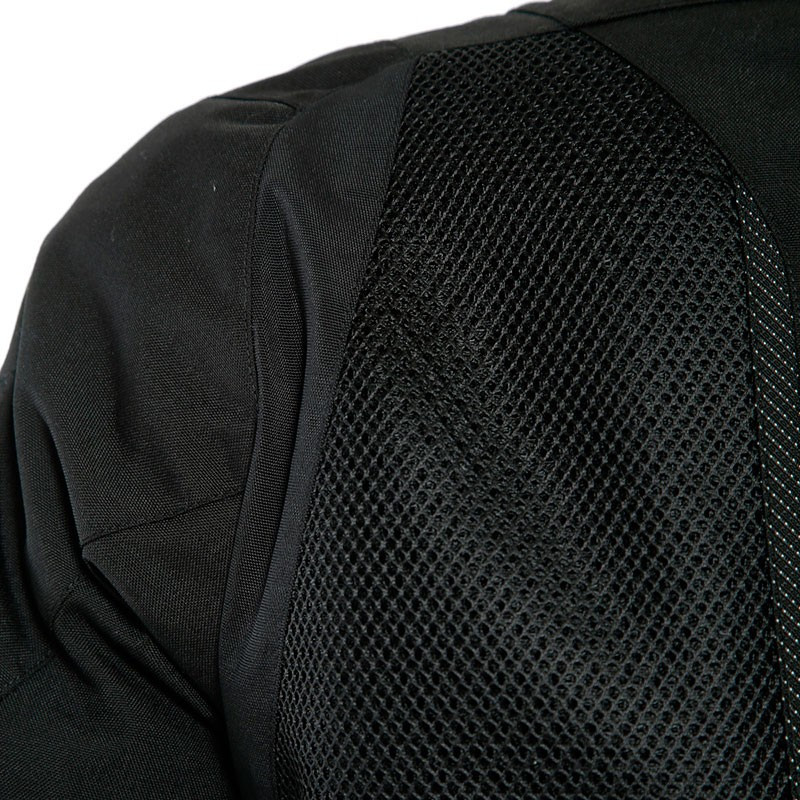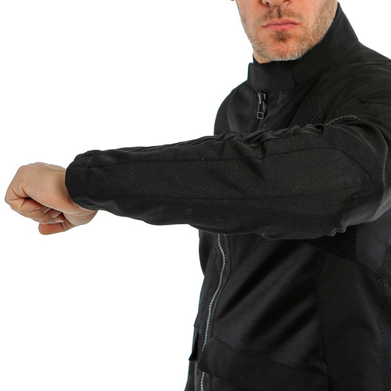 Dans un souci de vous garantir une sécurité optimale, Dainese équipe la Air Tourer Tex de protections coudes et épaules en matériaux composites articulées et homologuées CE.