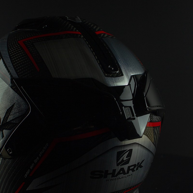 Dans le but d'augmenter l'insonorisation, limiter les perturbations aérodynamiques et atténuer les bruits parasites, le Spartan GT dispose de nouvelles platines de fixation d'écran Shark Skin, parfaitement intégrées dans la ligne du casque.