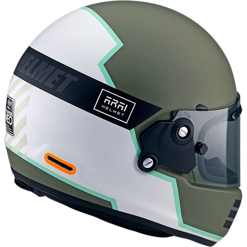 Bien au dela de seulement proposer un look digne des années 80, le concept-x répond au cahier des charges de la marque au meme niveau que les casques haut de gamme sportifs en proposant une calotte extérieure arrondie en PB e-cLc de construction stratifiée avec ceinture périphérique renforcée avec un nouvel insert au niveau de la couche intermédiaire permettant de réellement réduire le poids sans perdre en protection pour que le produit répondre parfaitement aux standards du fabricant japonais, toujours en bénéficiant de l'effet ricochet garantissant l'effet de rebond limitant la transmition de l'énergie et glissant litéralement sur le sol tout en évitant d'accrocher sur les aspérités de la route pour limiter encore plus les traumatismes, cet élément est le fondement et l'élément clé de l'esprit Arai depuis sa création à savoir 100% de sécurité pour le pilote.