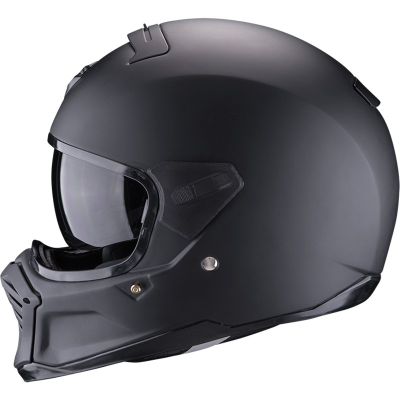 Devenu un des principaux acteurs dans le monde des casques motos, la marque Scorpion Exo vous propose sont nouveau casque moto transformable en fibre avec écran solaire et avec homologué, le Exo-HX1 Solid.