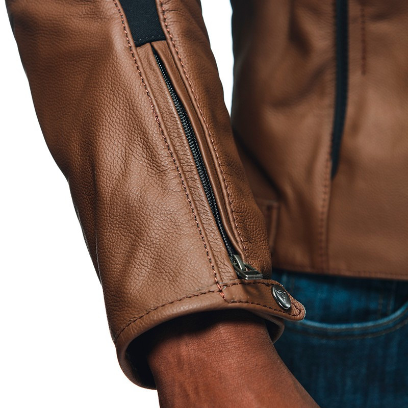 • Blouson moto construit en cuir bovin à la fois souple et résistant à l'abrasion et à la déchirure en cas de chute