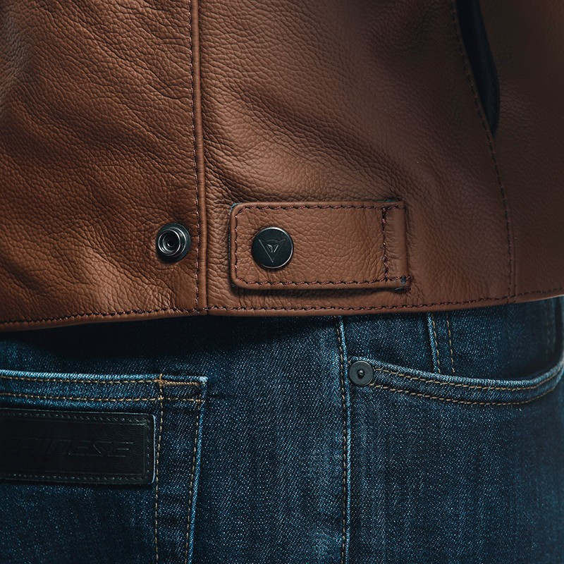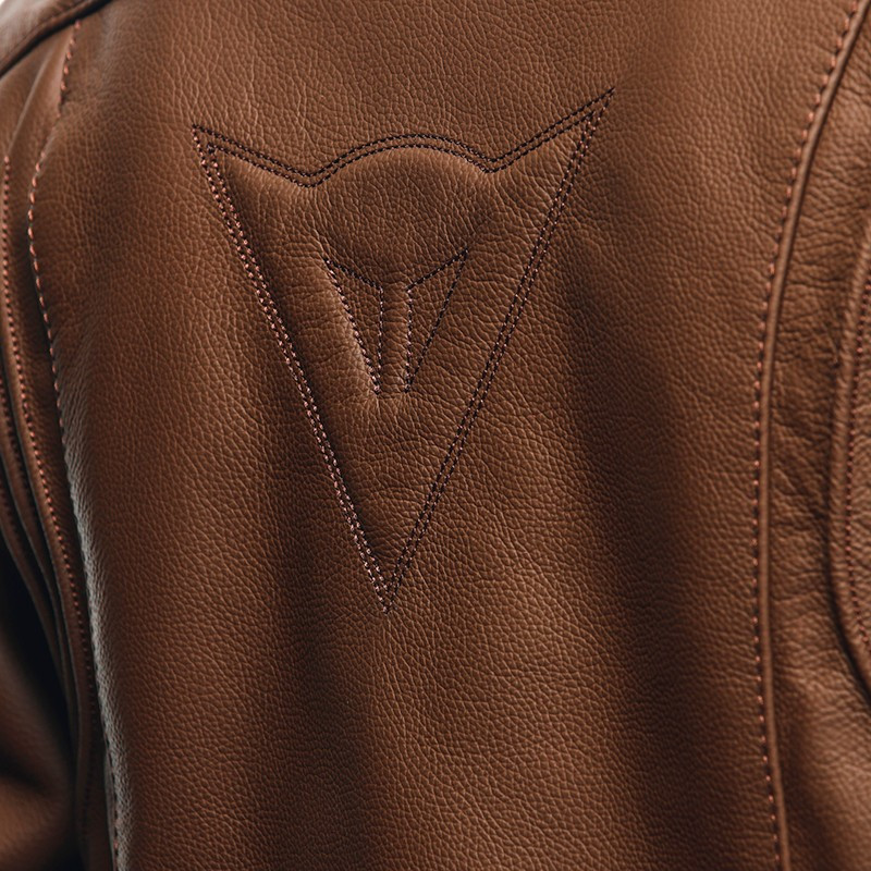 Le blouson est équipé de protections coudes et épaules discrètes et confortables et il est construit en cuir de haut de gamme, la qualité Dainese avec le look en plus !