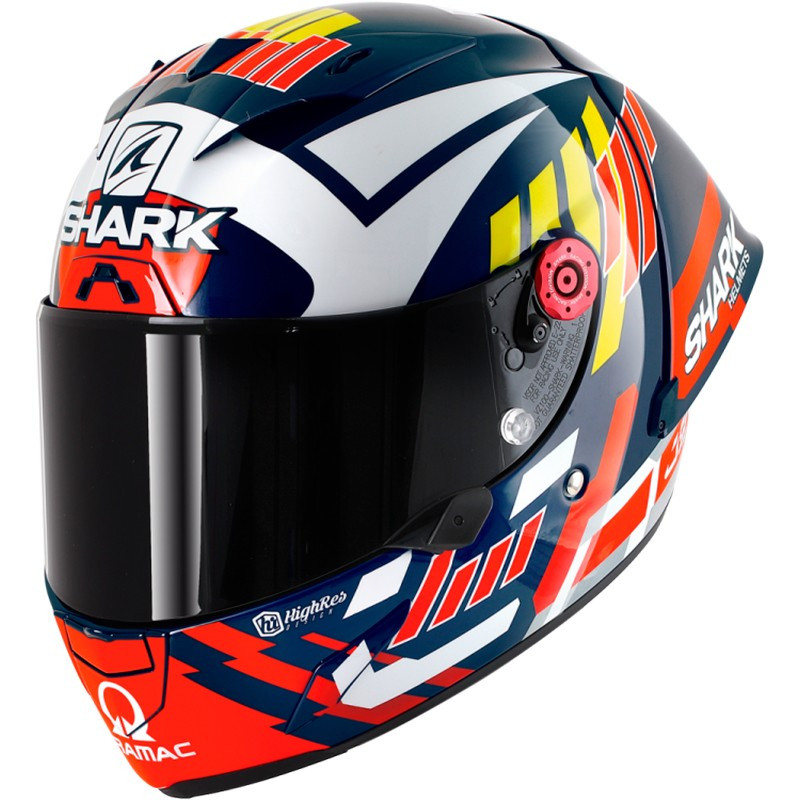 Véritable casque de course, développé en étroite collaboration avec les pilotes de la marque, le casque intégral Shark Race-R Pro GP Zarco Signature est un casque ultra-sportif par excellence que vous propose la marque française.