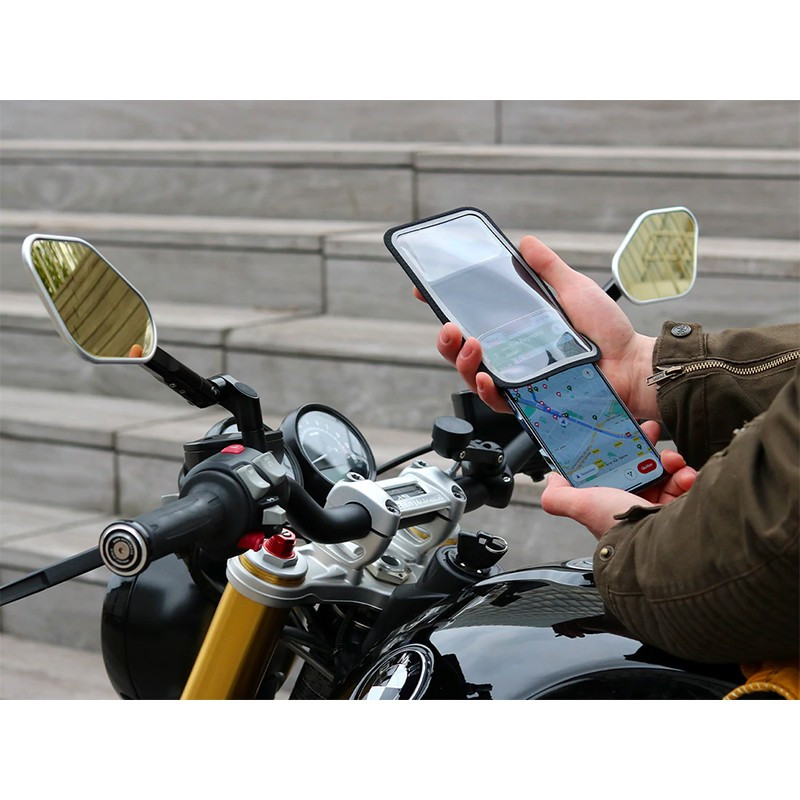 Le support moto PRO BOOST Shapeheart vous permet d'installer de manière fixe et personnalisée votre téléphone sur votre guidon afin de vous laisser guider par votre GPS.