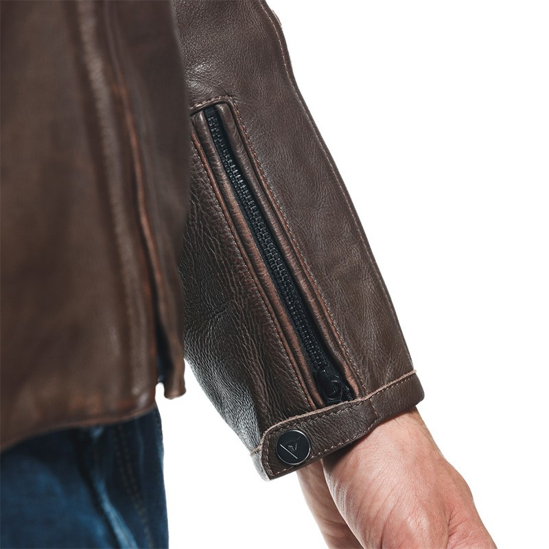 Le fabriquant italien de vêtements moto Dainese vous présente son blouson de moto vintage en cuir pour homme avec doublure chaude, le Merak Leather Jacket.