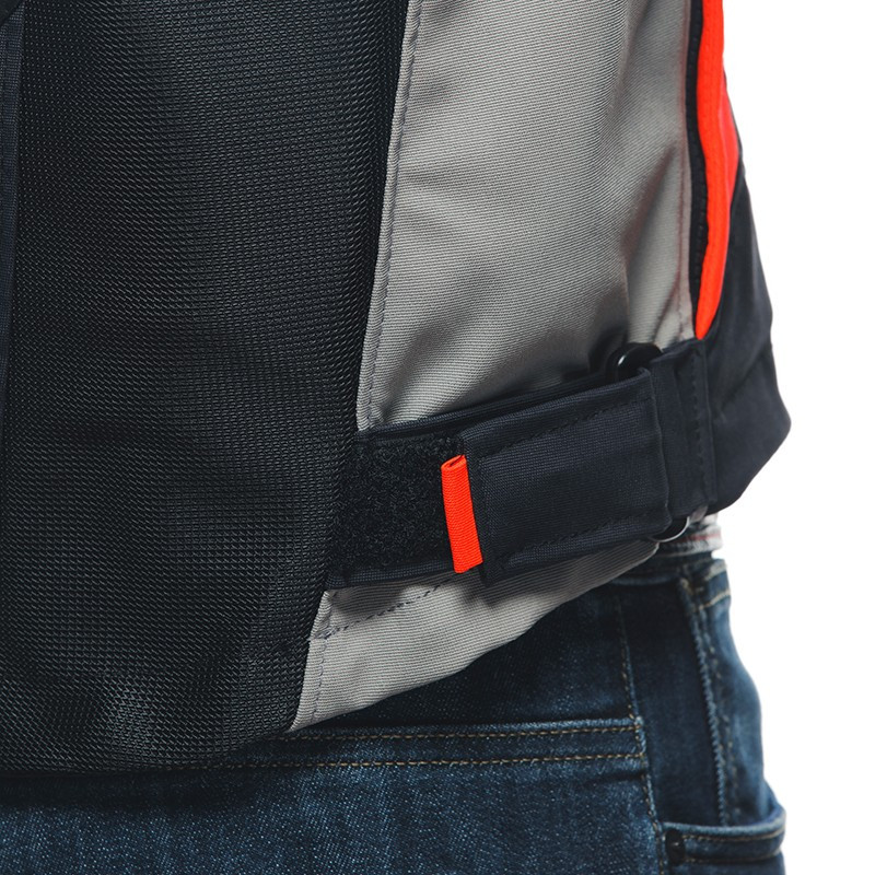 Structure élastique en tissu Mugello, qui garantit une ergonomie exceptionnelle et une grande liberté de mouvement. Les inserts en aluminium au niveau des épaules, associés aux protections composites, offrent une sécurité renforcée.