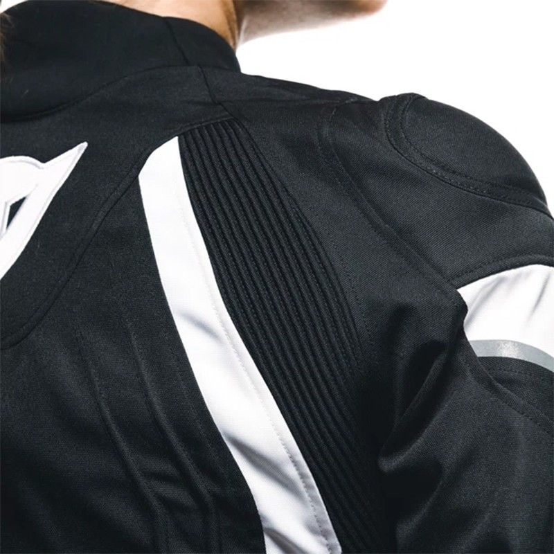 Le fabricant italien Dainese vous présente son blouson moto textile pour l'été et la mi-saison avec doublure thermique, ventilé et homologué pour femme, le Avro 5 Tex Lady Jacket.