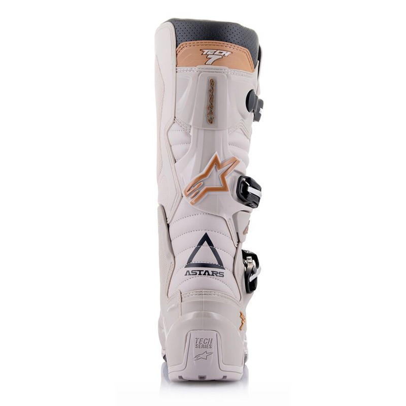 La piastra protettiva sagomata del polpaccio è iniettata con polimero ad alto modulo per resistere agli urti e incorpora il sistema Blade Flex sviluppato da Alpinestars per un maggiore controllo e precisione nei movimenti, una maggiore protezione per il tallone e il tendine d'Achille e aiuta a prevenire l'iperflessione.