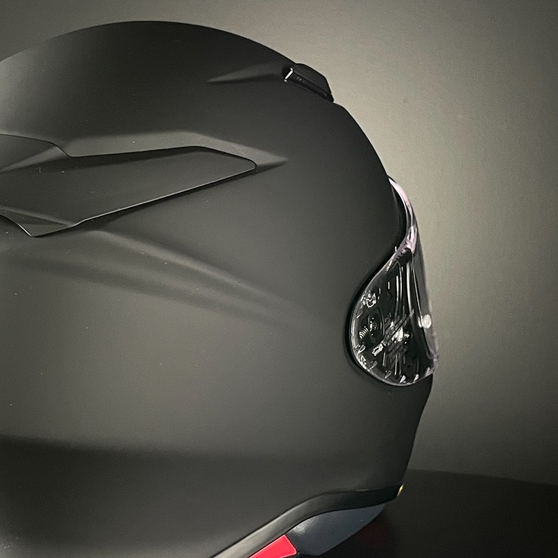 - Spoiler aerodinamico integrato nella parte posteriore del casco che consente un'efficace stabilizzazione del casco.