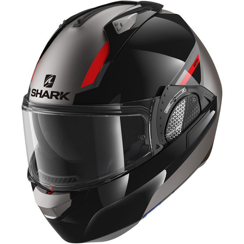Degno discendente dell'Evoline ed evoluzione dell'Evo-ES, il nuovo casco modulare da moto Shark Evo-GT Sean Mat concentra tutta la competenza del produttore francese nel settore dei caschi modulari da moto, con il suo cinturino che si inclina all'indietro e la sua doppia omologazione jet e integrale.