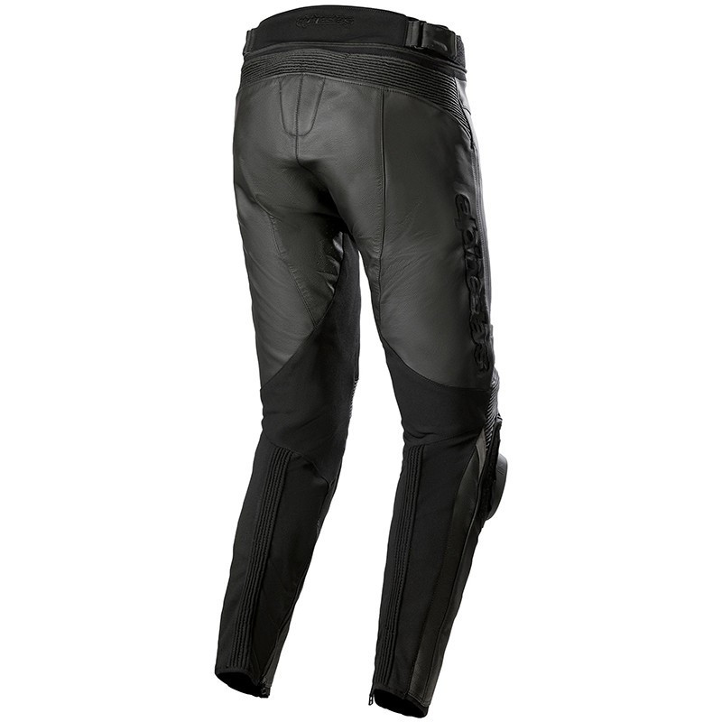I pantaloni sono realizzati in pelle pieno fiore, hanno ventilazione sopra le ginocchia e protezioni per le ginocchia omologate, slider rimovibili e sostituibili e la possibilità di aggiungere protezioni per i fianchi, fornite come optional.
