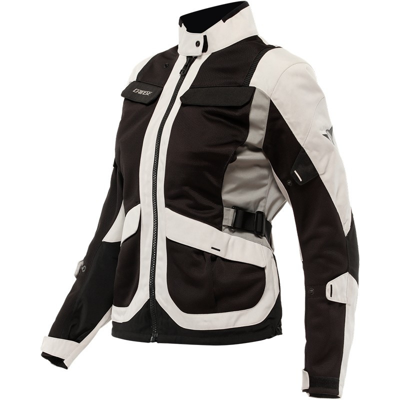 Il produttore italiano di abbigliamento motociclistico Dainese vi presenta la sua giacca lunga estiva da donna in tessuto ventilato per moto da trail/avventura, la Desert Lady Tex Jacket .