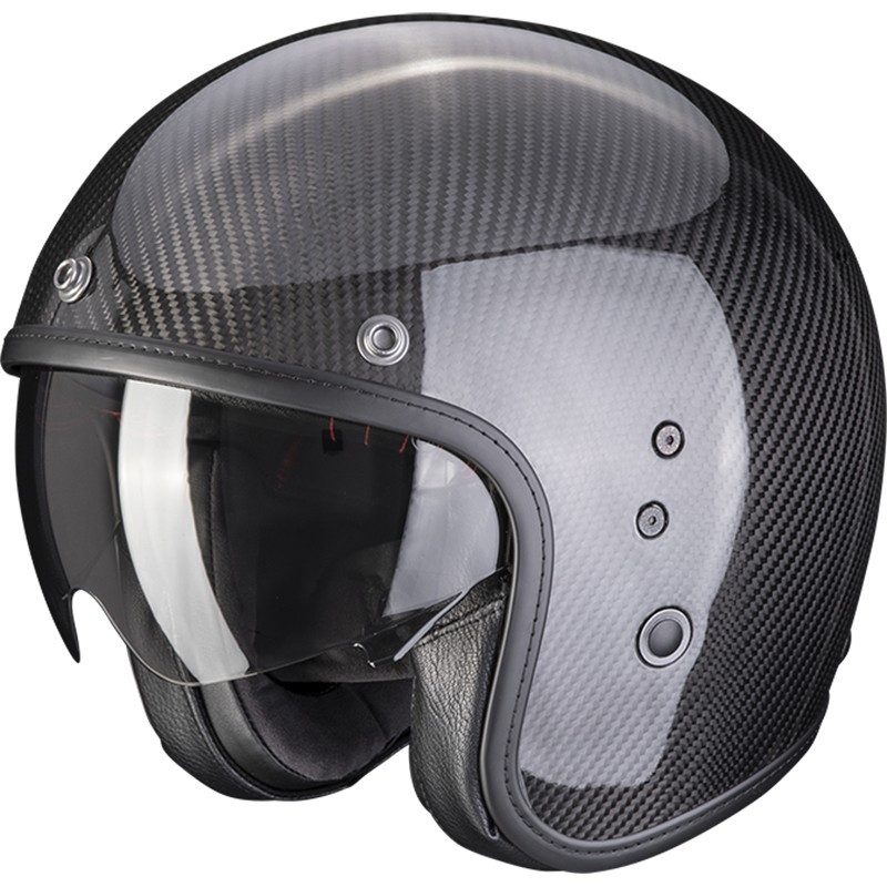 Diventato uno degli attori principali nel mondo dei caschi da moto, il marchio Scorpion Exo vi propone il suo casco vintage jet in fibra di carbonio con visiera parasole interna a scomparsa e omologazione ECE 22.06, il Belfast Evo Carbon Solid .