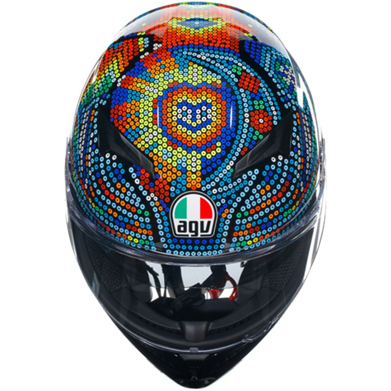 Evoluzione AGV K-3 SV, il nuovo casco AGV K3 Rossi Winter Test 2018 evolve su molti punti, la sua nuova forma è stata sviluppata per garantire un peso dinamico a 130 km/h in modo da alleggerire le cervicali e limitare la presa del vento, è inoltre dotato di un nuovo interno top di gamma, di una visiera parasole facilmente azionabile tramite una leva posizionata nella parte inferiore sinistra del casco e soprattutto ha la nuova certificazione CE 22.06 e grazie al protocollo di progettazione Extreme Safety di AGV , supera addirittura la norma 22.06 per offrirti una protezione ottimale.
