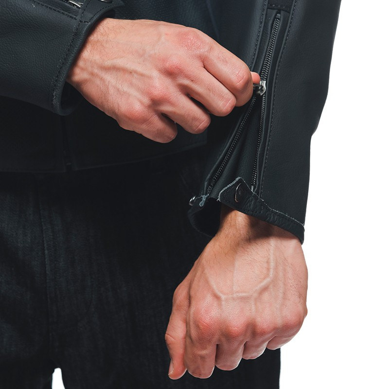 La giacca è dotata di discrete e comode protezioni su gomiti e spalle ed è realizzata in pelle di prima qualità, la qualità Dainese con stile!