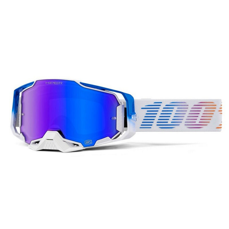 Il marchio di attrezzature all terrain 100% , leader del mercato dagli anni '80, vi presenta i suoi nuovi occhiali da motocross Armega M2 Neo Hyper Iridium Blue .